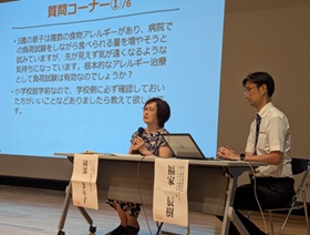 9月6日(土)、「母の会」は横浜市の戸塚公会堂で開催された市主催のアレルギー講演会「食物アレルギーとアトピー性皮膚炎~お子さんの気になる症状を解決するには」に協力し、会場で展示を行ったほか園部が参加者の質問に対応しました。