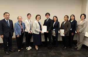 11月26日(水)、「母の会」など7患者会は連名で厚生労働省などに「食物経口負荷試験およびOTC類似薬の保険適用、ネフィー®点鼻液に関する要望」を行いました。要望書手交は公明党アレルギー疾患対策プロジェクトの席上で行い、「母の会」とNPOアレルギー児を支える全国ネット「アラジーポット」、NPO法人アレルギーの正しい理解をサポートするみんなの会、大阪狭山食物アレルギーアトピーサークルSmile・Smile、アレルギーっ子の子育てママの代表が出席しました。